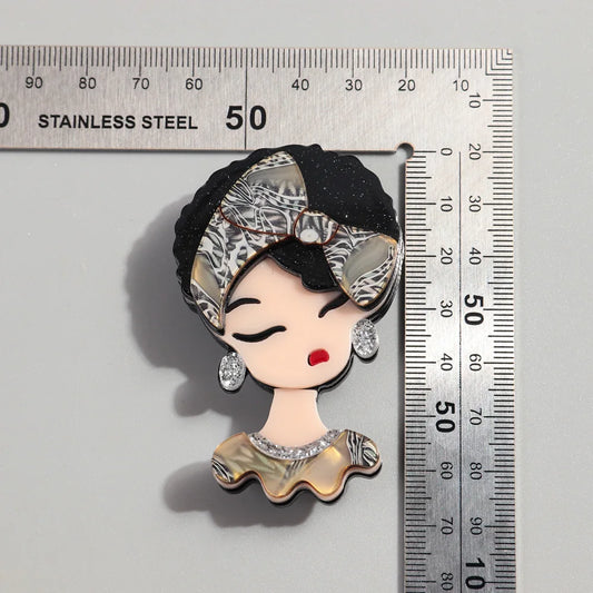 New Leopard Acrylic Bowknot Hairband Girl Brooch Pins for Women Cute Girls Figure Brooches Badges Jewelry Costume Accessories