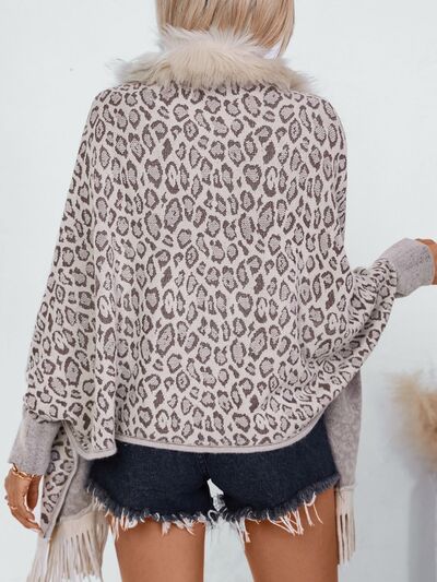 Leopard Color Block Round Neck Long Sleeve Sweater