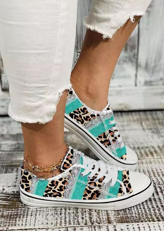 Breathable Leopard Mesh Lace Up Sneakers