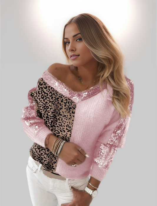 Wild Glam Two Toned Leopard Print Sequined Sweater